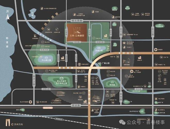 l外部:步行可达中心湖公园、玉湖公园,近昆山森林公园,“三园两湖”生态环伺