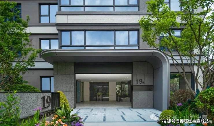 拾阶而上,苍松迎客,中轴对称挑檐新中式门头屹立,归家第一眼即惊艳。