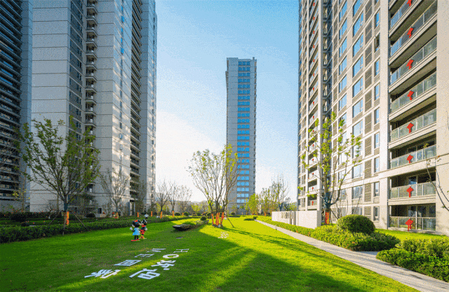 静谧雅致的艺术庭院、开阔的阳光大草坪、高低错落的宅前花园......园区里道路宽阔,花木葱茏,生机盎然,业主们不出小区就能体验到公园般的惬意与舒适。