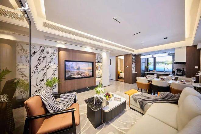 而建面约124㎡户型则尽显改善质感,客餐一体的宽敞空间搭配约6.7米双联阳台,不仅延伸了视觉尺度,更将湖景与园景无缝纳入室内,亲友相聚时尽显格调;