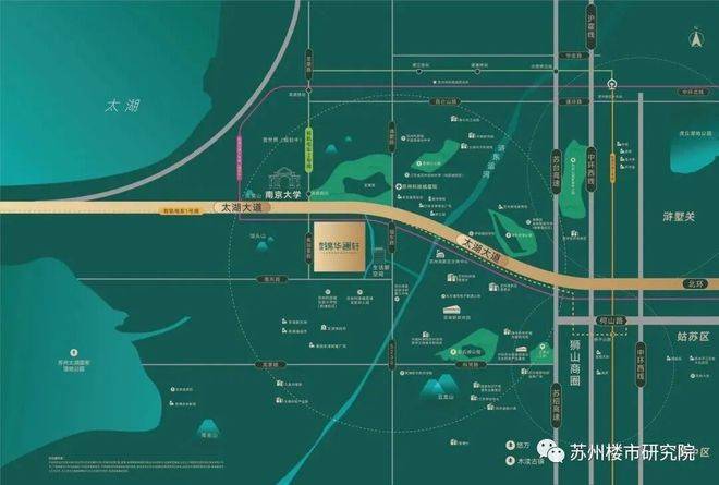 本案位于太湖大道发展主轴上,占位城市服务配套区,串联新区行政中心、文体中心、时尚水岸商业街、科技城医院、南大、太湖等现有资源,新区未来发展看科技城,科技城发展以太湖大道为主轴,向两侧扩容,堪比园区现代大道。