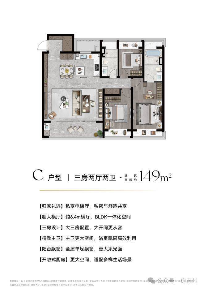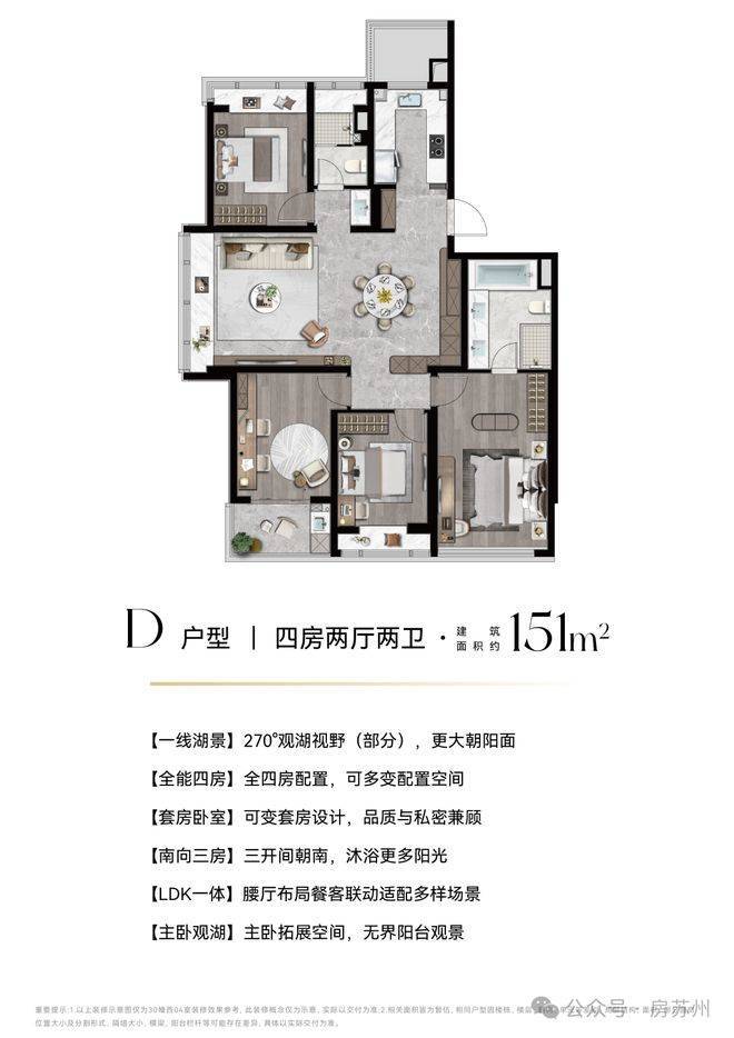 户型进阶:主力建筑面积约105-151㎡ 三/四房,大面宽/瞰景厅,特设观景户型