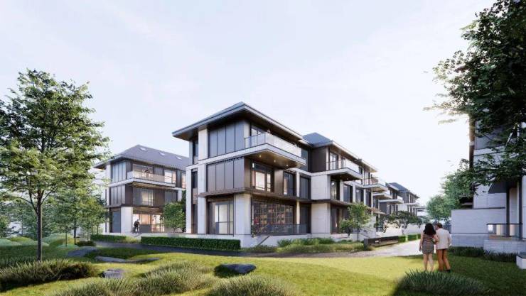 6. **现代中式高颜值立面,品质感强**采用现代中式建筑风格,立面搭配石材与铝板,线条简洁大气、质感高级,不仅视觉出众,更耐风化、易打理,长期保持高端社区品相。