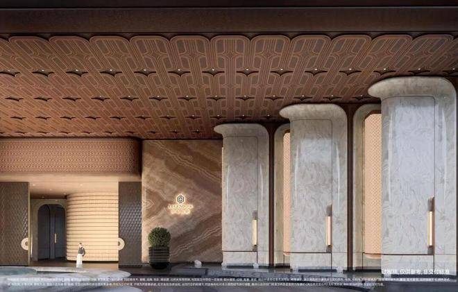 产品方面,建筑立面材料以奢石、安第斯雪景石材、铝板、古铜色金属线条等为主。