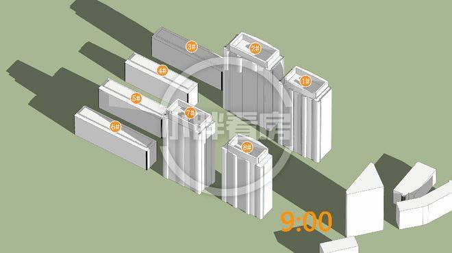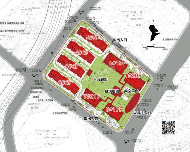 滨杭传麒府共规划4幢17-21F高层+4幢6F叠墅,叠墅位于西侧,高层靠近大悦城方向。