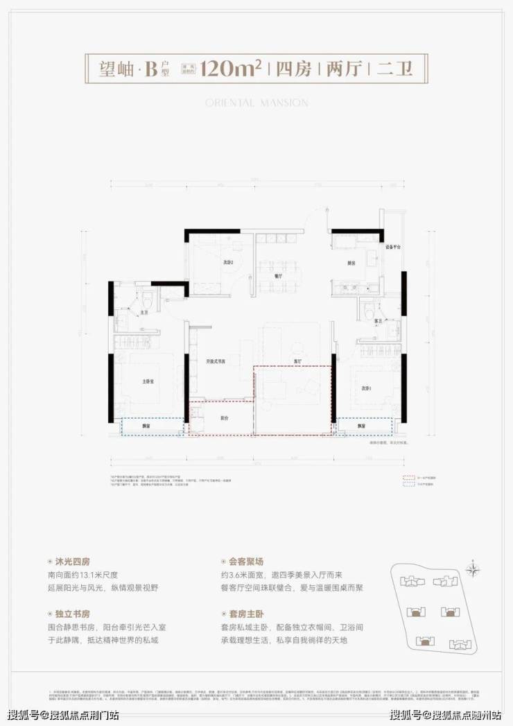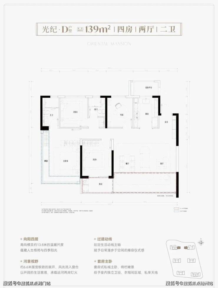 南向三开间朝南,约9.8米大面宽,约7米阔绰阳台,餐客厅贯通,并连接阳台,百变待客空间;套房式主卧,南联阔景飘窗,栖居更温馨舒适。