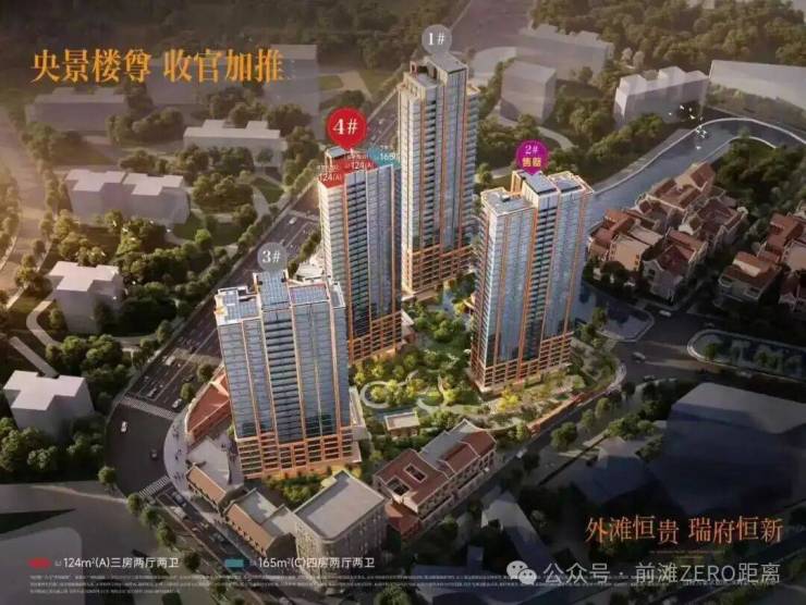 最新消息:外滩瑞府最后批次入市!推出4号楼,建面约124-165㎡3-4房,总价约1554-2784万。