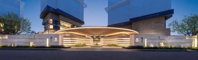 因项目整体抬高,从下沉庭院到架空层“空中花园”的落差极大,形成独特的峡谷地貌,杭序府的设计团队汲取九溪烟树为造园灵感,打造一个立体多维的城市溪谷交互园林;因项目毗邻江岸,杭序府的外立面以“站立的江潮”为灵感,大面积弧形玻璃与四层堆叠的石材线条,将钱塘江潮的千钧之力和流水之韵凝练于建筑肌理之中。
