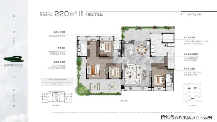 建面约220㎡的「典藏版墅居」堪称空中墅居的终极形态,独门独户+双重归家动线+前庭后院+无界景观+墅级挑高+动静有序+星级主卧。
