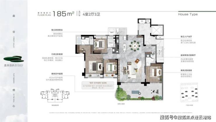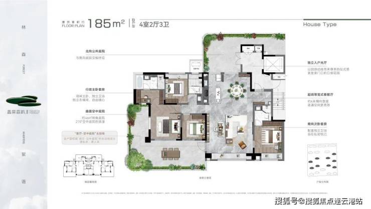 产品规划:建面约150㎡、185㎡、220㎡,户均约30-50㎡空中庭院