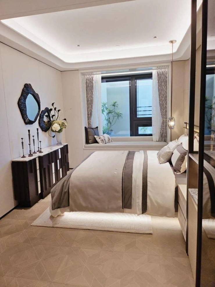 8、不仅是金钱上的奢侈,更是时间广度的奢侈。比如,整个下沉式庭院材料选用土耳其进口老虎玉,由匠人耗时60天手工打磨定制,可见海上·清和玺对业主归家仪式感设计的用心与苛求。海派光厅之外的归家迎宾树木更是由设计师辗转多个城市才寻到的、树龄超60年的福木“紫薇”。
