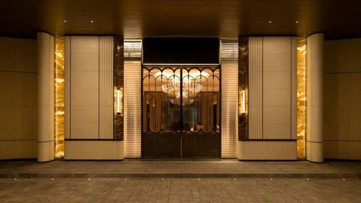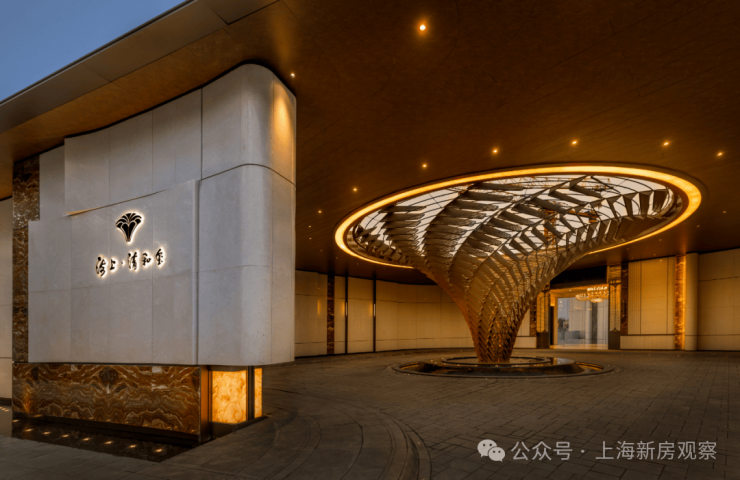 6、社区含“奢材”量很高。门庭延街的外立面,以精工定制弧形米色石材为主调,镶嵌典藏级老虎玉大理石,点缀古铜色现代海派艺术感灯器,整体呈现出百年海派的贵雅气质。