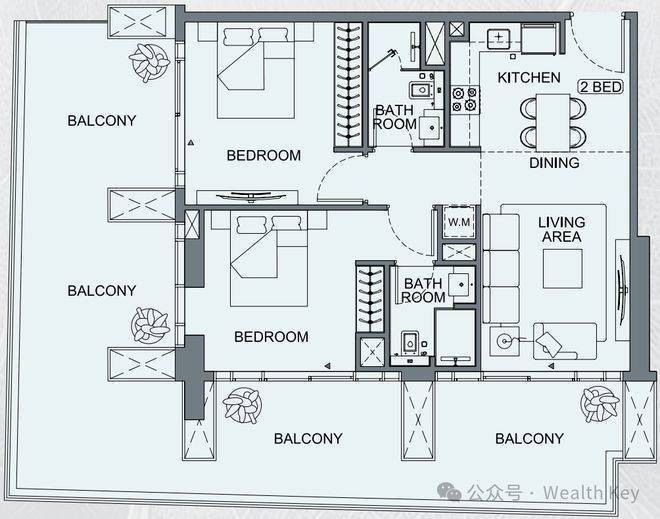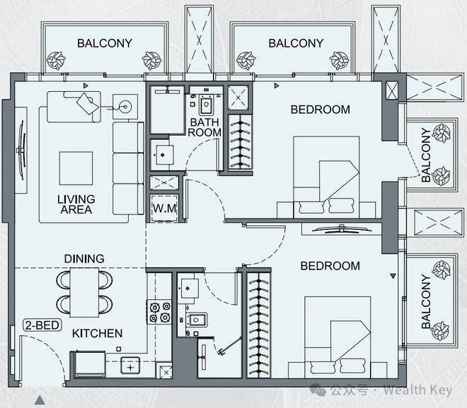 Etherea社区中为每位投资者提供了开间(Studio)到两居室的丰富户型选择,您可以根据您与家人的需求选择最满意的户型。