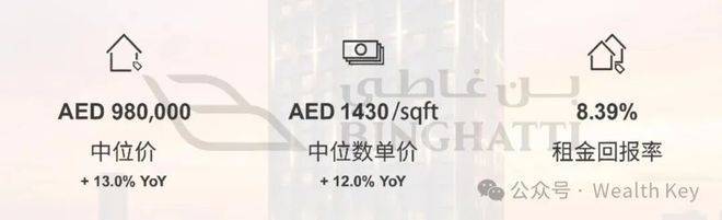 (2)租金回报率亮眼:2025年JVC平均租金回报率达 8.39%,2026年1月达到9%,远超许多国际都市。2025年平均单价 AED1,430/平方英尺,同比增长超12%,价格稳健增长;