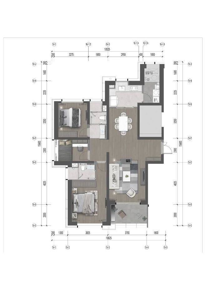 在狮山户型越做越大的趋势下,约105㎡户型的存在显得尤为珍贵。它采用创新的“2+1”设计,在常规两房基础上,多出一个灵活使用的书房空间
