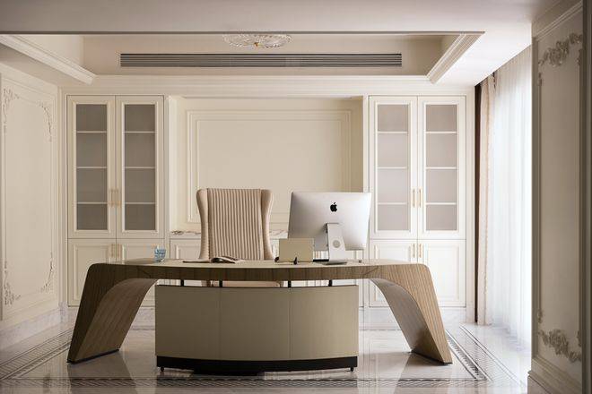 衣帽间通过对称布局与精致雕花细节,强化法式轻奢的仪式感,同时满足大容量储物需求。