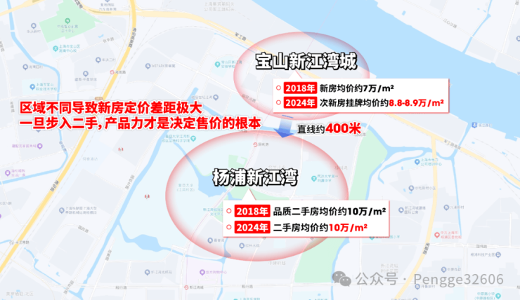 在新房定价时,宝山新房均价约7万/㎡、杨浦新江湾约10万+/㎡,这无可厚非。