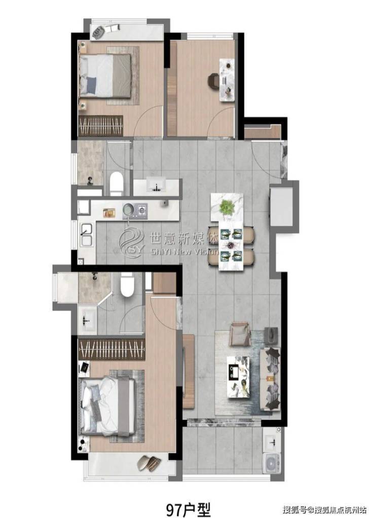 象屿深入考量空间与场景的运用,将生活中看得见与看不见的细节进行了细致打磨。玄关、阳台、厨房、卫浴均设置科学收纳空间,营造高品质生活体验的同时,更带给居者层建面约83㎡3房2厅1卫