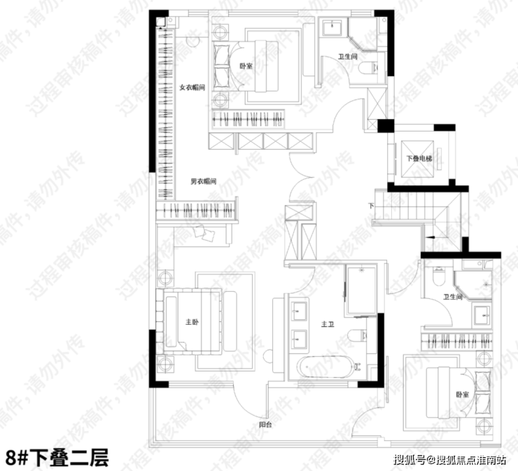 建面约220㎡下叠户型图