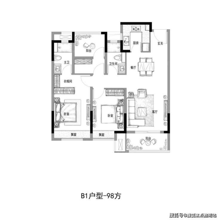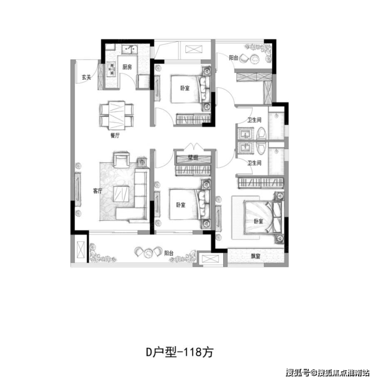 建面约118㎡四房户型可以说是三代同堂、二孩时代的“必入款”。
