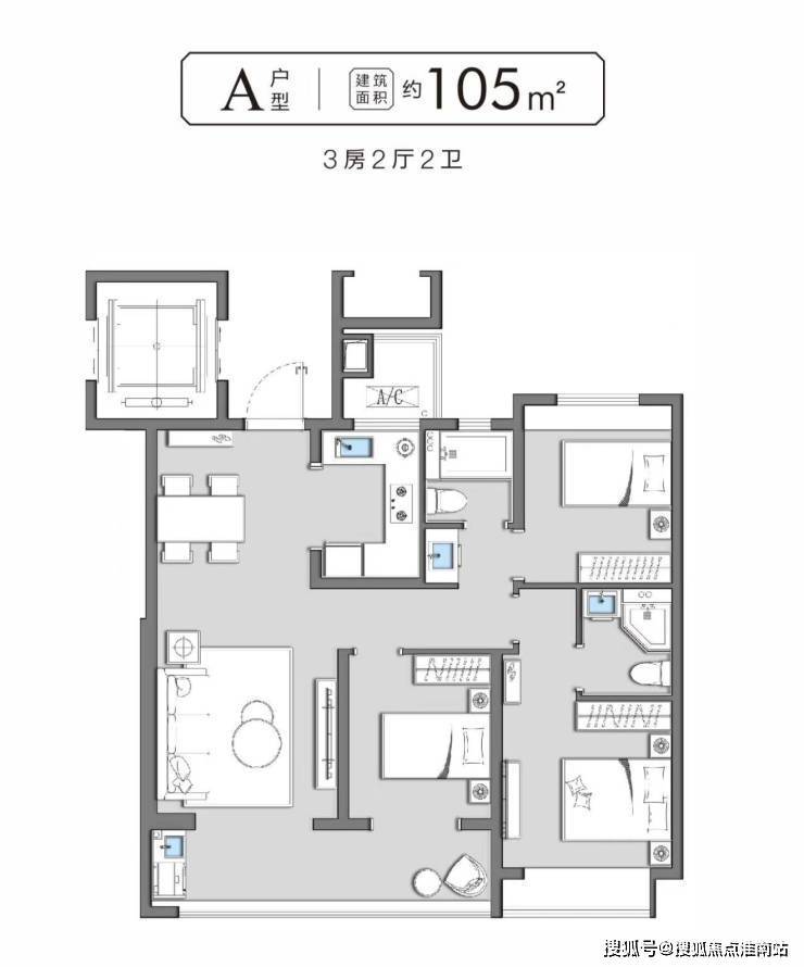 105㎡三室两卫南北通透,得房率75%约253万起地铁口刚需优选