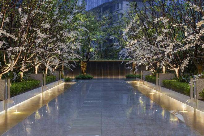 入口水院,在树木与雕塑的光影跃动中,感受都市森呼吸的陪伴慢生活。