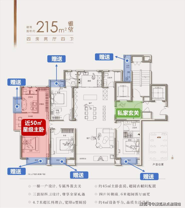 包括市面上不常见的一梯一户、超配设备平台、双套房三卫生间设计等等,从空间到功能,堪称昆山大平层里的教科书。