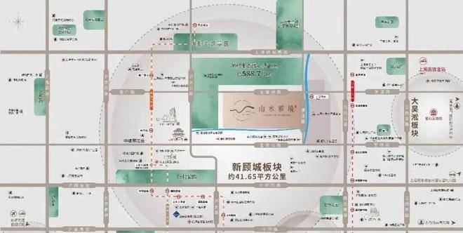 中建山水雅境位于周家浜-白荡河景观带与潘泾路景观带交汇处,紧邻顾村生态绿心特定区,坐拥都会绿心的卓越生态资源,未来必然成为北上海的又一高端居住区。(信息来源:《宝山规土网》)