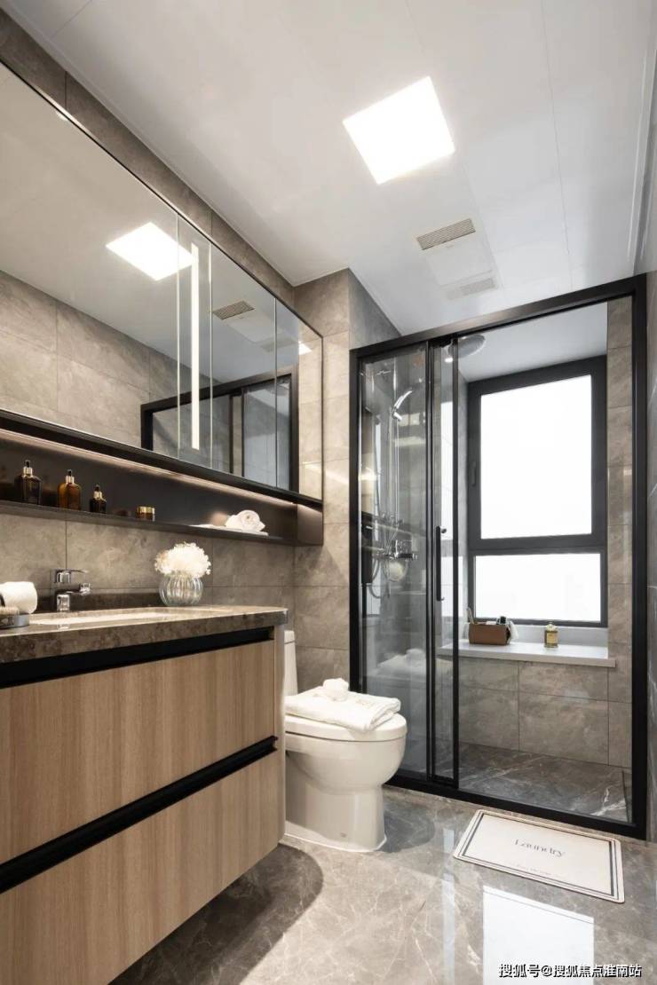 不仅标配了中央空调+新风系统,而且还设计了全屋墙布、不锈钢踢脚线、磁吸轨道灯带设计等等……从装修大件,到细微之处,无一不体现了这个精工国企对于这个社区的匠心。