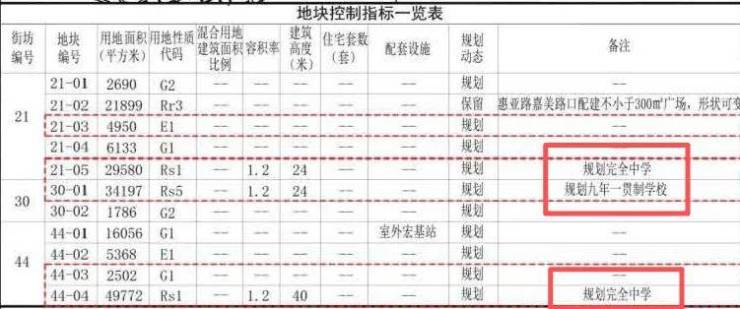 根据最新公示,时代之城北侧21-05地块与44-04地块统一规划为“完全中学”。