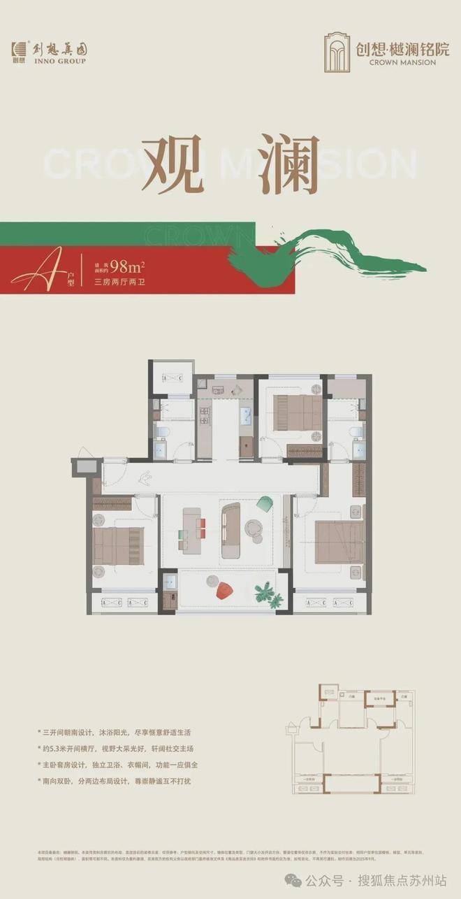 特色户型:98㎡南向三开间+5.3米横厅,136㎡四开间朝南