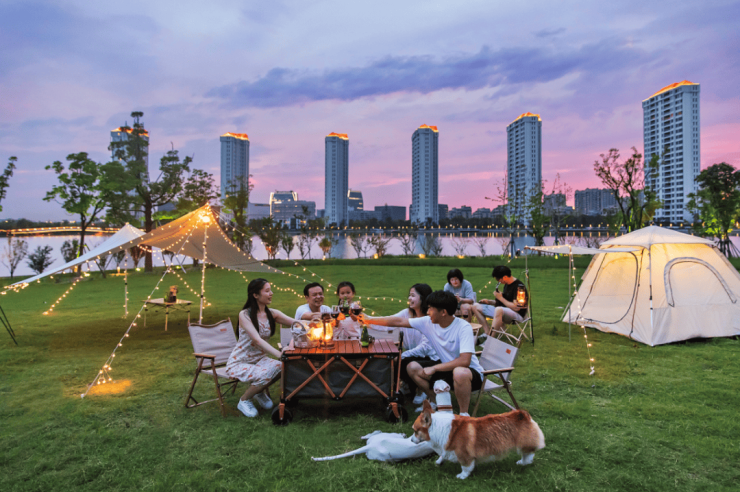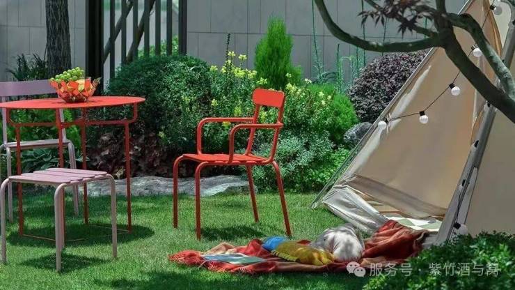 泳池里两旁的庭院,可以与亲朋好友相聚。