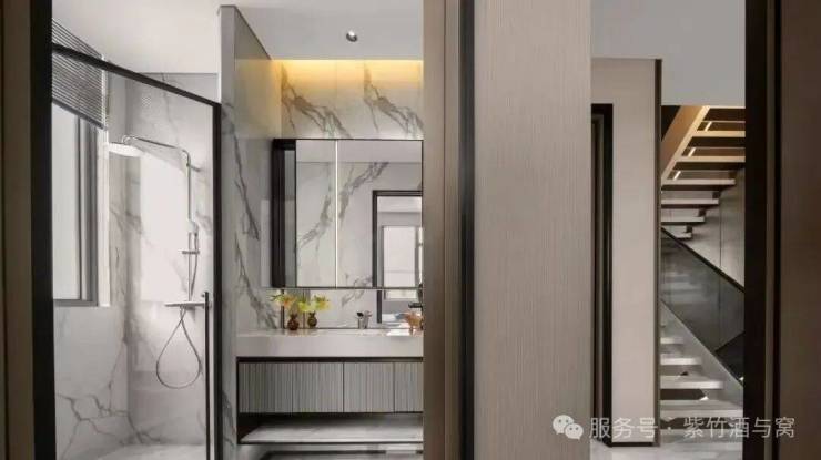 北入户的190+290房型,一层朝南直面庭院和泳池,如果配上整扇的落地玻璃移门......