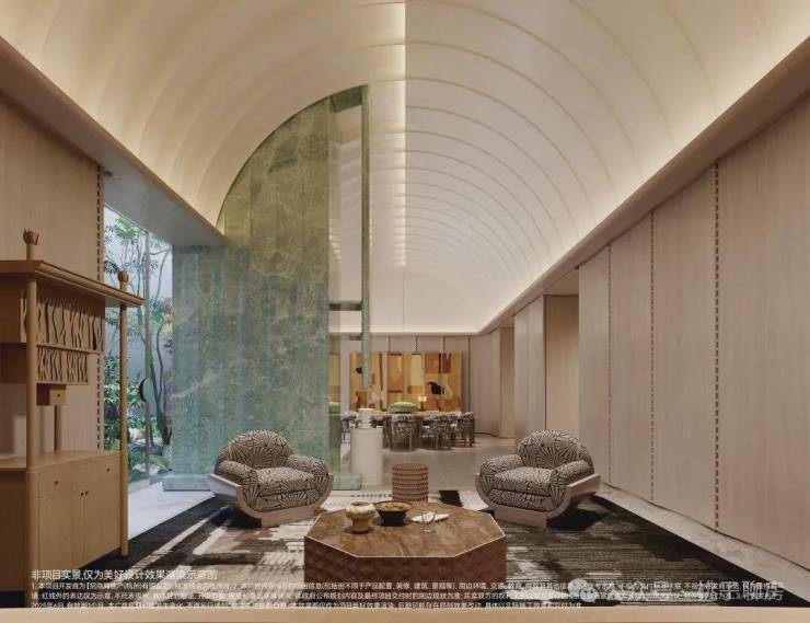 内外双重门厅景墙运用了约1000方顶奢才会用上的月光米黄石材,还是更费料的弧形石材,搭配香槟金线条,与爱马仕全球旗舰店的双曲面叠墙造景手法如出一辙。招商杭序府售楼处电话☎:400-9016-520【售楼热线】✔✔✔招商杭序府营销中心热线☎400-9016-520招商杭序府售楼处地址☎400-9016-520