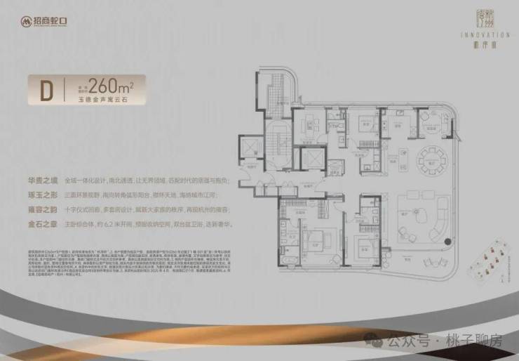 尤其是建面约260方户型,项目打造无界弧形客厅,外接浮岛式阳台,采用无柱曲面玻璃,消除传统立柱对视线的切割。