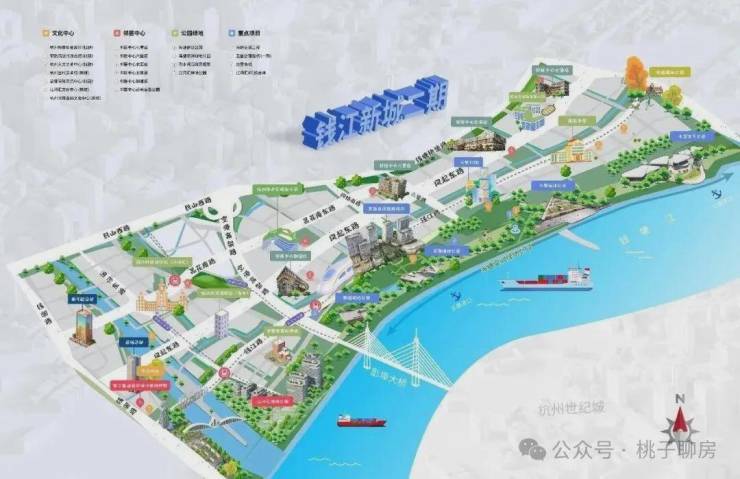 钱二有着拥江发展主战场、未来总部湾、滨水新潮岸、世界级滨水区等大头衔。