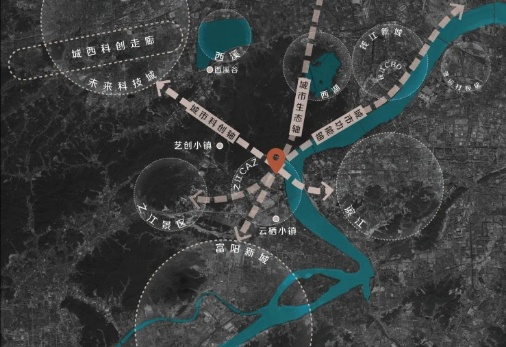 NO.2|贰 项目区位西湖区,宋城旁(一路之隔)“拥江发展”战略下继钱江新城、奥体之后备受瞩目的价值高地项目,位于融合“三轴一心”的之江新城CAZ中央活力区。