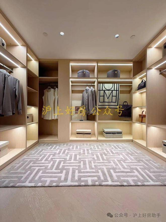 收纳空间也诚意满满,建面约195㎡主卧带双排衣柜,建面约174㎡带双衣帽柜,男女主人可分区收纳。