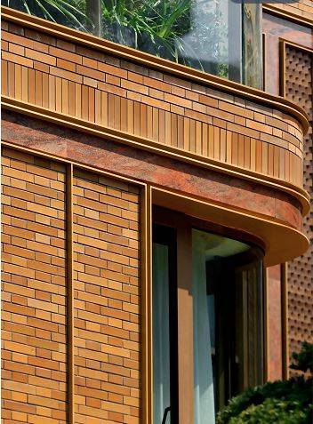 例如,在社区入户,目前已经完美呈现出来的,有强烈视觉冲击的立面大量的红砖、红洞石及大面积的落地弧形玻璃搭配的相得益彰,整个门头既有厚重的历史感,又不失极简主义的现代美。