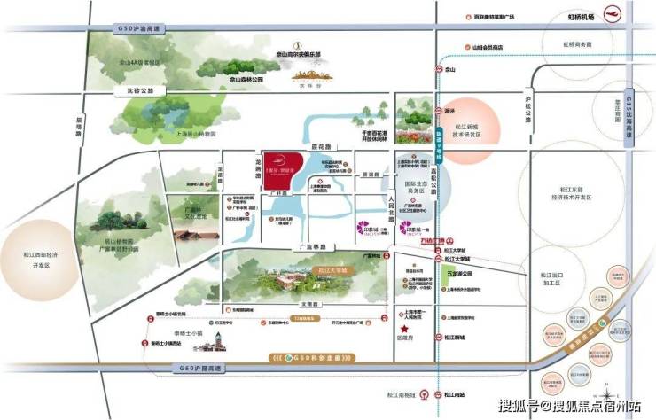 🍃生态配套:项目东侧有广富林遗址公园(4A级,4000年文化积淀,上海文脉起源)、广富林郊野公园(免费,上海六大郊野公园之一)、辰山植物园(4A级,占地207万平方米,为华东地区最大的植物园)。北侧有佘山国家森林公园(4A级,沪上之巅,中国10大富人区之一)