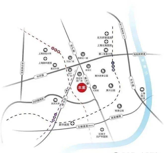 本案距内环高架黄兴路入口500米、周家嘴路入口1.9公里、