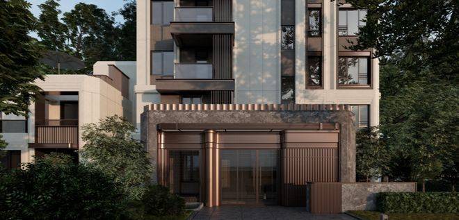· 经典细节:取义海派经典元素,笔挺与曲线的优雅融合(古铜拱券 坡屋顶形制 沙逊别墅玻璃花窗 半圆形的拱形门窗)