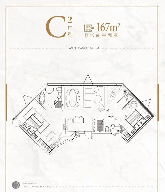 户型:建面52-277㎡,主力为131-176㎡的2-3房,总价298万起,部分277㎡五房户型配备12米横厅和7.2米面宽江景书房