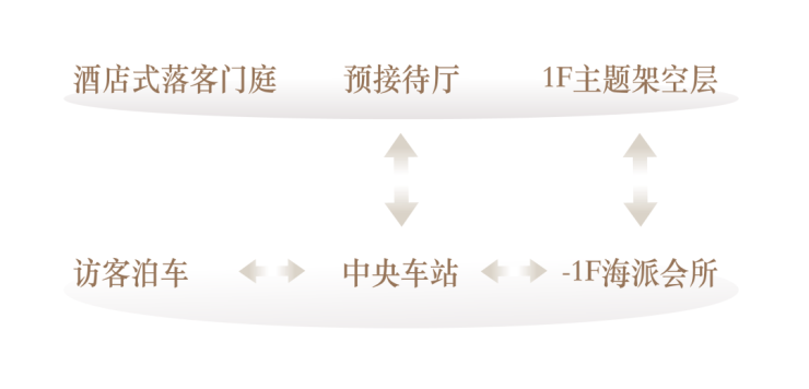 地上空间的美学感受随着车行归家动线也延伸到了地下,海上清和玺的地下车库,不仅精装交付,还首次提出“中央车站”概念。