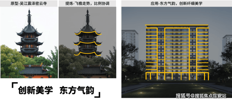 文化符号提炼:以东方飞檐为灵感,融合横向线条与浅灰基调,塑造流动感立面视觉。