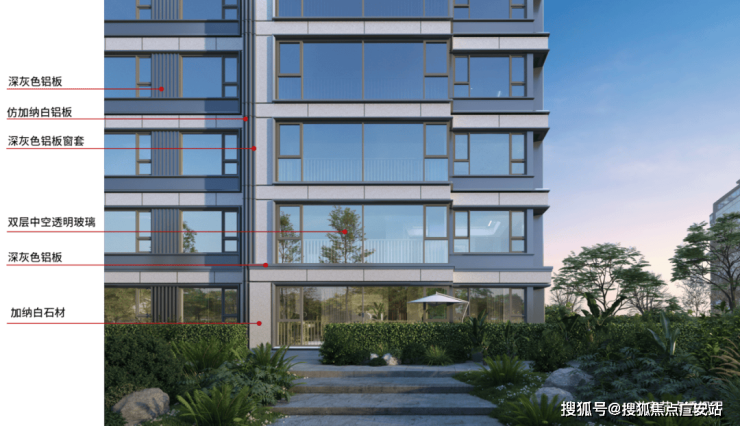 材料质感:铝合金型材+Low-E玻璃+仿石铝板,兼顾耐久性与光影美学,诠释高端改善品质。