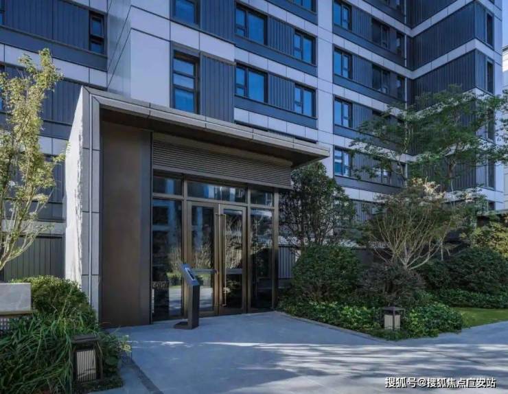 建筑基座采用深灰色铝板和浅灰色天然石材拼接工艺,给人以大气稳重的质感。单元门头用石材与玻璃精致交接,细节处理上做点睛之笔,赋予建筑承接传统美学与在极简现代化风格的色彩。入户大堂采用酒店式大堂设计,背景墙以亚马逊绿岩板搭配,尊享归家仪式感。