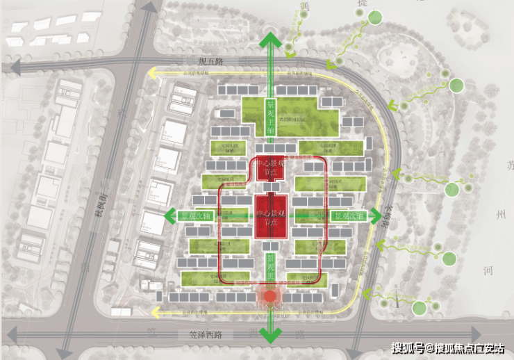 中心长景观轴,组团分区明确