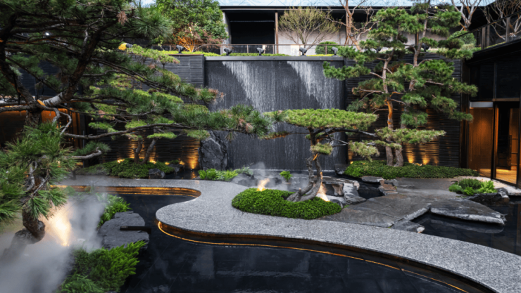以松林、瀑布、奇石、云雾、流泉营造隐世度假氛围,配套含礼仪归家、百万级健身房、观瀑泳池、禅意茶室、行政酒廊、高端私宴六大会所空间,为圈层社交提供雅致空间。