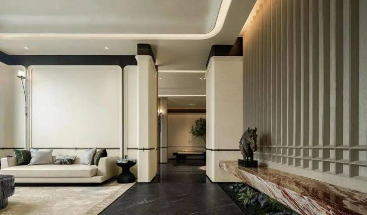 十字女王玄关作为关键点与客厅完美接融,营造出一种优雅的端景氛围。